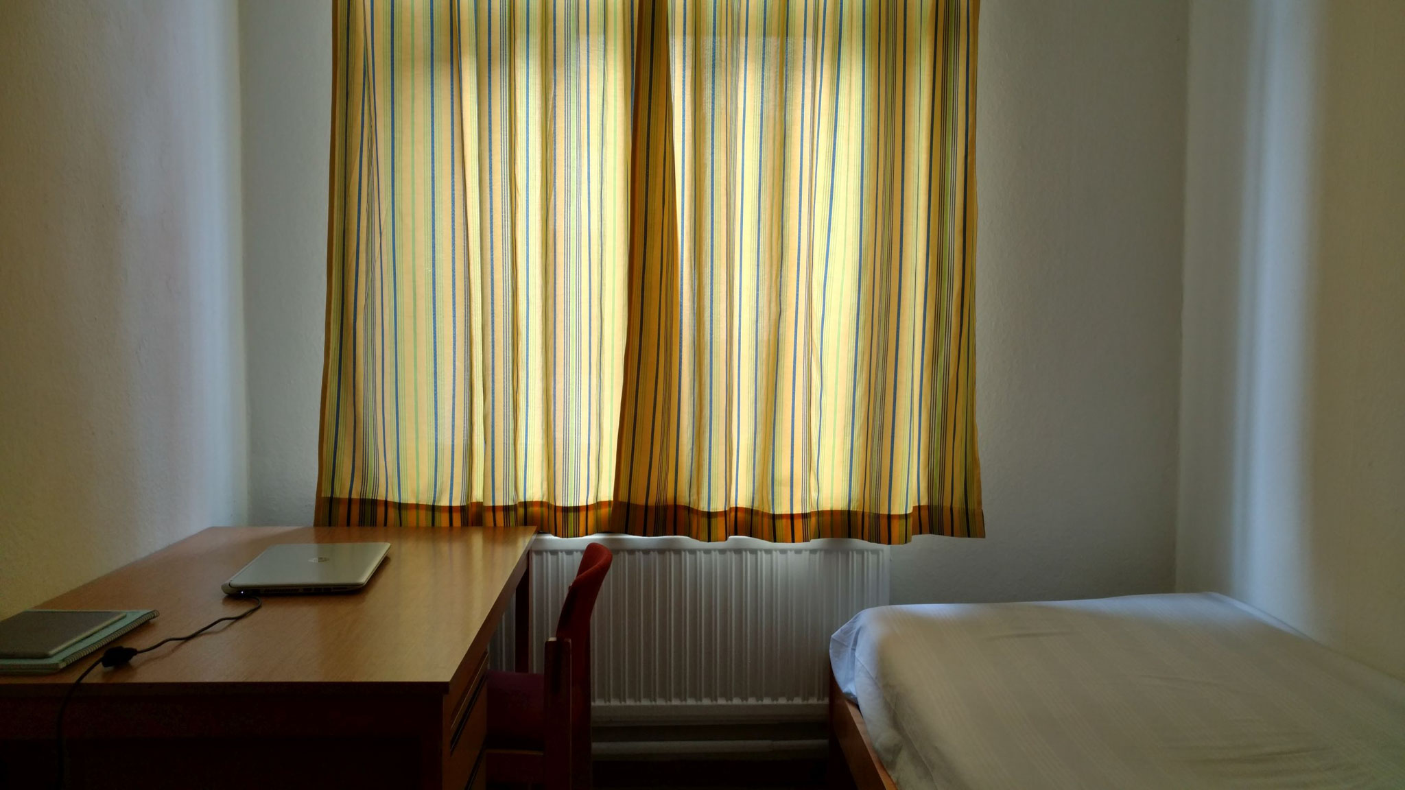 - Ausstattung Zimmer: Bett, Matratze, Schrank, Bücherregal, Schreibtisch, Telefonanschluss, WLAN, Waschbecken (WC/ Duschen auf dem Flur geteilt)